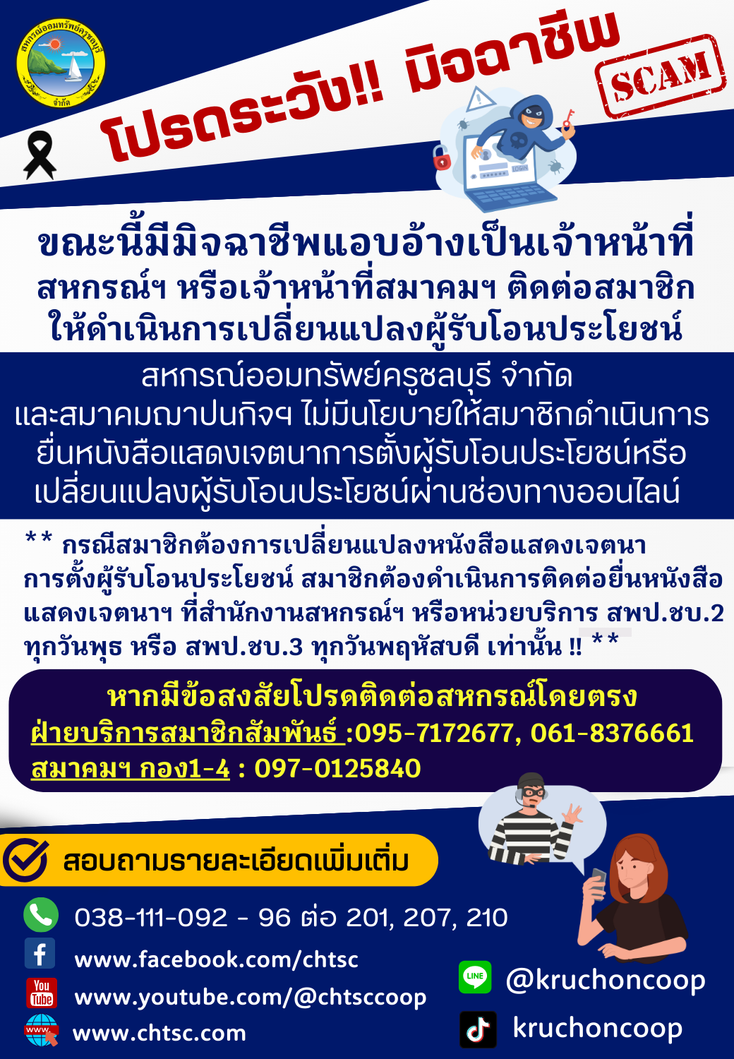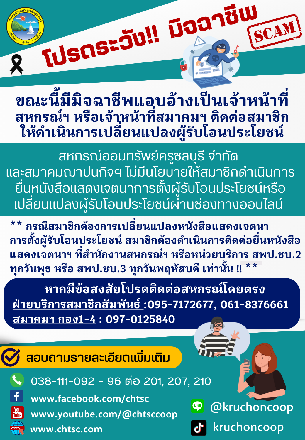 สมาชิกสามารถส่งหลักฐานการโอนเงินผ่านทาง Line : @kruchoncoop