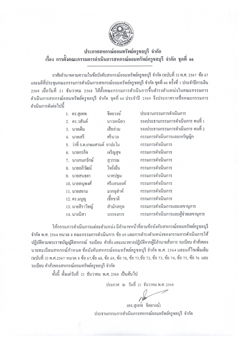 คณะกรรมการดำเนินการ ชุดที่ 66 ประจำปี 2569