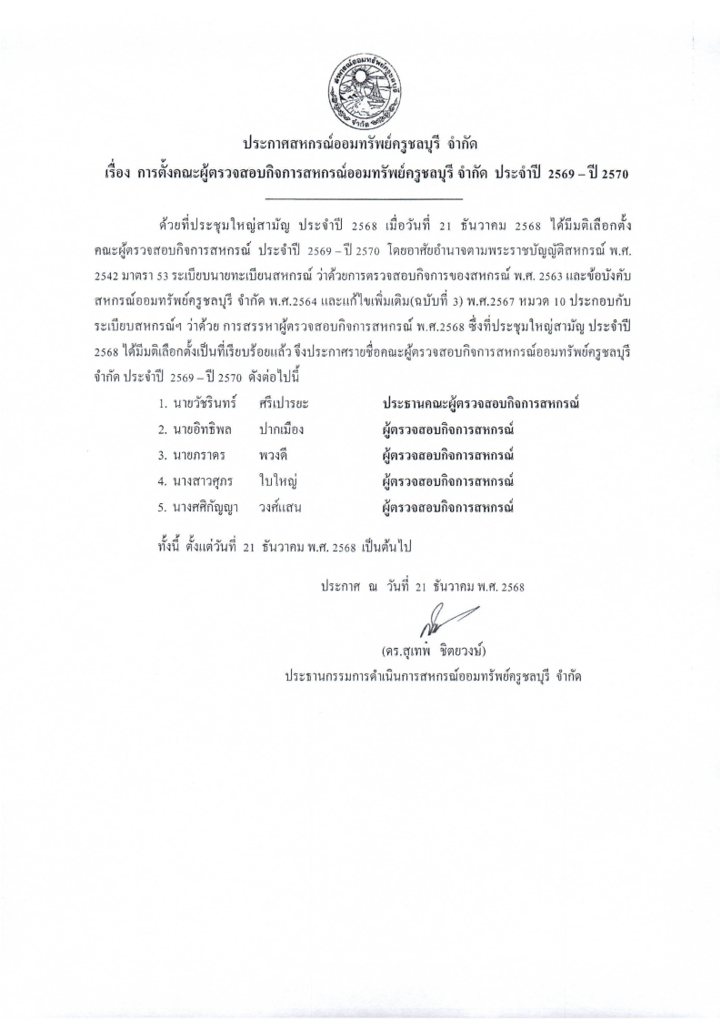 คณะผู้ตรวจสอบกิจการสหกรณ์ ประจำปี 2569 - 2570