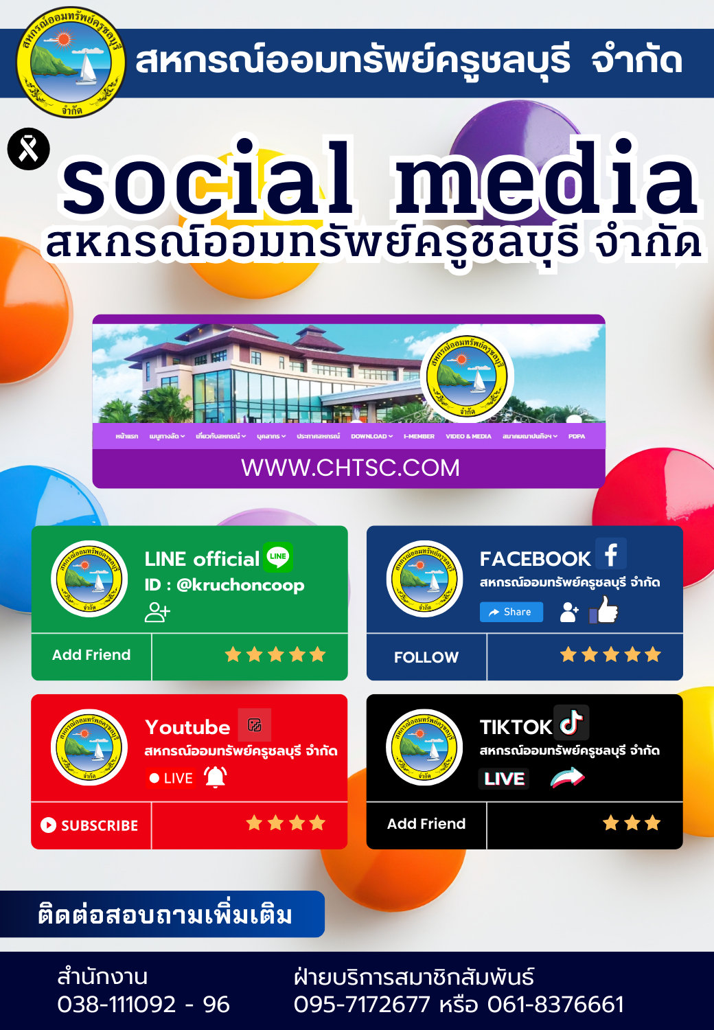 สมาชิกสามารถส่งหลักฐานการโอนเงินผ่านทาง Line : @kruchoncoop
