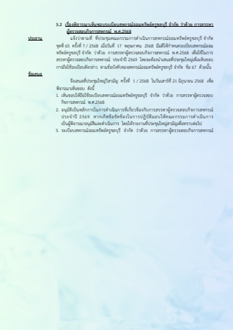 3.2 %u0e40%u0e23%u0e37%u0e48%u0e2d%u0e07%u0e1e%u0e34%u0e08%u0e32%u0e23%u0e13%u0e32%u0e40%u0e2b%u0e47%u0e19%u0e0a%u0e2d%u0e1a%u0e23%u0e30%u0e40%u0e1a%u0e35%u0e22%u0e1a%u0e2a%u0e2b%u0e01%u0e23%u0e13%u0e4c%u0e2d%u0e2d%u0e21%u0e17%u0e23%u0e31%u0e1e%u0e22%u0e4c%u0e04%u0e23%u0e39%u0e0a%u0e25%u0e1a%u0e38%u0e23%u0e35 %u0e08 %u0e32%u0e01%u0e31%u0e14 %u0e27%u0e48%u0e32%u0e14%u0e49%u0e27%u0e22 %u0e01%u0e32%u0e23%u0e2a%u0e23%u0e23%u0e2b%u0e32 %u0e1c%u0e39%u0e49%u0e15%u0e23%u0e27%u0e08%u0e2a%u0e2d%u0e1a%u0e01%u0e34%u0e08%u0e01%u0e32%u0e23%u0e2a%u0e2b%u0e01%u0e23%u0e13%u0e4c %u0e1e.%u0e28.2568%u0e1b%u0e23%u0e30%u0e18%u0e32%u0e19 %u0e41%u0e08%u0e49%u0e07%u0e27%u0e48%u0e33%u0e15%u0e33%u0e21%u0e17%u0e35%u0e48 %u0e17%u0e35%u0e48%u0e1b%u0e23%u0e30%u0e0a%u0e38%u0e21%u0e04%u0e13%u0e30%u0e01%u0e23%u0e23%u0e21%u0e01%u0e33%u0e23%u0e14 %u0e33%u0e40%u0e19%u0e34%u0e19%u0e01%u0e33%u0e23%u0e2a%u0e2b%u0e01%u0e23%u0e13%u0e4c%u0e2d%u0e2d%u0e21%u0e17%u0e23%u0e31%u0e1e%u0e22%u0e4c%u0e04%u0e23%u0e39%u0e0a%u0e25%u0e1a%u0e38%u0e23%u0e35 %u0e08 %u0e33%u0e01%u0e31%u0e14 %u0e0a%u0e38%u0e14%u0e17%u0e35%u0e48 65 %u0e04%u0e23%u0e31%u0e49%u0e07%u0e17%u0e35%u0e48 7 / 2568 %u0e40%u0e21%u0e37%u0e48%u0e2d%u0e27%u0e31%u0e19%u0e17%u0e35%u0e48 17 %u0e1e%u0e24%u0e29%u0e20%u0e33%u0e04%u0e21 2568 %u0e21%u0e35%u0e21%u0e15%u0e34%u0e43%u0e2b%u0e49%u0e01 %u0e33%u0e2b%u0e19%u0e14%u0e23%u0e30%u0e40%u0e1a%u0e35%u0e22%u0e1a%u0e2a%u0e2b%u0e01%u0e23%u0e13%u0e4c%u0e2d%u0e2d%u0e21%u0e17%u0e23%u0e31%u0e1e%u0e22%u0e4c%u0e04%u0e23%u0e39%u0e0a%u0e25%u0e1a%u0e38%u0e23%u0e35 %u0e08 %u0e33%u0e01%u0e31%u0e14 %u0e27%u0e48%u0e33%u0e14%u0e49%u0e27%u0e22 %u0e01%u0e33%u0e23%u0e2a%u0e23%u0e23%u0e2b%u0e33%u0e1c%u0e39%u0e49%u0e15%u0e23%u0e27%u0e08%u0e2a%u0e2d%u0e1a%u0e01%u0e34%u0e08%u0e01%u0e33%u0e23%u0e2a%u0e2b%u0e01%u0e23%u0e13%u0e4c %u0e1e.%u0e28.2568 %u0e40%u0e1e%u0e37%u0e48%u0e2d%u0e43%u0e0a%u0e49%u0e43%u0e19%u0e01%u0e33%u0e23%u0e2a%u0e23%u0e23%u0e2b%u0e33%u0e1c%u0e39%u0e49%u0e15%u0e23%u0e27%u0e08%u0e2a%u0e2d%u0e1a%u0e01%u0e34%u0e08%u0e01%u0e33%u0e23%u0e2a%u0e2b%u0e01%u0e23%u0e13%u0e4c %u0e1b%u0e23%u0e30%u0e08 %u0e33%u0e1b%u0e35 2569 %u0e42%u0e14%u0e22%u0e08%u0e30%u0e15%u0e49%u0e2d%u0e07%u0e19 %u0e33%u0e40%u0e2a%u0e19%u0e2d%u0e17%u0e35%u0e48%u0e1b%u0e23%u0e30%u0e0a%u0e38%u0e21%u0e43%u0e2b%u0e0d%u0e48%u0e40%u0e1e%u0e37%u0e48%u0e2d%u0e40%u0e2b%u0e47%u0e19%u0e0a%u0e2d%u0e1a%u0e01%u0e33%u0e23%u0e16%u0e37%u0e2d%u0e43%u0e0a%u0e49%u0e23%u0e30%u0e40%u0e1a%u0e35%u0e22%u0e1a%u0e14%u0e31%u0e07%u0e01%u0e25%u0e48%u0e33%u0e27 %u0e15%u0e33%u0e21%u0e02%u0e49%u0e2d%u0e1a%u0e31%u0e07%u0e04%u0e31%u0e1a%u0e02%u0e2d%u0e07%u0e2a%u0e2b%u0e01%u0e23%u0e13%u0e4c%u0e2d%u0e2d%u0e21%u0e17%u0e23%u0e31%u0e1e%u0e22%u0e4c%u0e04%u0e23%u0e39%u0e0a%u0e25%u0e1a%u0e38%u0e23%u0e35 %u0e08 %u0e33%u0e01%u0e31%u0e14 %u0e02%u0e49%u0e2d 67 %u0e14%u0e49%u0e27%u0e22%u0e19%u0e31%u0e49%u0e19%u0e02%u0e49%u0e2d%u0e40%u0e2a%u0e19%u0e2d %u0e08%u0e36%u0e07%u0e40%u0e2a%u0e19%u0e2d%u0e17%u0e35%u0e48%u0e1b%u0e23%u0e30%u0e0a%u0e38%u0e21%u0e43%u0e2b%u0e0d%u0e48%u0e27%u0e34%u0e2a%u0e33%u0e21%u0e31%u0e0d %u0e04%u0e23%u0e31%u0e49%u0e07%u0e17%u0e35%u0e48 1 / 2568 %u0e43%u0e19%u0e27%u0e31%u0e19%u0e40%u0e2a%u0e33%u0e23%u0e4c%u0e17%u0e35%u0e48 21 %u0e21%u0e34%u0e16%u0e38%u0e19%u0e33%u0e22%u0e19 2568 %u0e40%u0e1e%u0e37%u0e48%u0e2d%u0e1e%u0e34%u0e08%u0e33%u0e23%u0e13%u0e33%u0e40%u0e2b%u0e47%u0e19%u0e0a%u0e2d%u0e1a %u0e14%u0e31%u0e07%u0e19%u0e35%u0e491. %u0e40%u0e2b%u0e47%u0e19%u0e0a%u0e2d%u0e1a%u0e43%u0e2b%u0e49%u0e16%u0e37%u0e2d%u0e43%u0e0a%u0e49%u0e23%u0e30%u0e40%u0e1a%u0e35%u0e22%u0e1a%u0e2a%u0e2b%u0e01%u0e23%u0e13%u0e4c%u0e2d%u0e2d%u0e21%u0e17%u0e23%u0e31%u0e1e%u0e22%u0e4c%u0e04%u0e23%u0e39%u0e0a%u0e25%u0e1a%u0e38%u0e23%u0e35 %u0e08 %u0e33%u0e01%u0e31%u0e14 %u0e27%u0e48%u0e33%u0e14%u0e49%u0e27%u0e22 %u0e01%u0e33%u0e23%u0e2a%u0e23%u0e23%u0e2b%u0e33%u0e1c%u0e39%u0e49%u0e15%u0e23%u0e27%u0e08%u0e2a%u0e2d%u0e1a%u0e01%u0e34%u0e08%u0e01%u0e33%u0e23%u0e2a%u0e2b%u0e01%u0e23%u0e13%u0e4c %u0e1e.%u0e28.2568 2. %u0e2d%u0e19%u0e38%u0e21%u0e31%u0e15%u0e34%u0e40%u0e1b%u0e47%u0e19%u0e2b%u0e25%u0e31%u0e01%u0e01%u0e33%u0e23%u0e43%u0e19%u0e01%u0e33%u0e23%u0e14 %u0e33%u0e40%u0e19%u0e34%u0e19%u0e01%u0e33%u0e23%u0e17%u0e35%u0e48%u0e40%u0e01%u0e35%u0e48%u0e22%u0e27%u0e02%u0e49%u0e2d%u0e07%u0e01%u0e31%u0e1a%u0e01%u0e33%u0e23%u0e2a%u0e23%u0e23%u0e2b%u0e33%u0e1c%u0e39%u0e49%u0e15%u0e23%u0e27%u0e08%u0e2a%u0e2d%u0e1a%u0e01%u0e34%u0e08%u0e01%u0e33%u0e23%u0e2a%u0e2b%u0e01%u0e23%u0e13%u0e4c%u0e1b%u0e23%u0e30%u0e08 %u0e33%u0e1b%u0e35 2569 %u0e2b%u0e33%u0e01%u0e40%u0e01%u0e34%u0e14%u0e02%u0e49%u0e2d%u0e02%u0e31%u0e14%u0e02%u0e49%u0e2d%u0e07%u0e43%u0e19%u0e01%u0e33%u0e23%u0e1b%u0e0f%u0e34%u0e1a%u0e31%u0e15%u0e34%u0e21%u0e2d%u0e1a%u0e43%u0e2b%u0e49%u0e04%u0e13%u0e30%u0e01%u0e23%u0e23%u0e21%u0e01%u0e33%u0e23%u0e14 %u0e33%u0e40%u0e19%u0e34%u0e19%u0e01%u0e33%u0e23 %u0e40%u0e1b%u0e47%u0e19%u0e1c%u0e39%u0e49%u0e1e%u0e34%u0e08%u0e33%u0e23%u0e13%u0e33%u0e2d%u0e19%u0e38%u0e21%u0e31%u0e15%u0e34%u0e41%u0e25%u0e30%u0e14 %u0e33%u0e40%u0e19%u0e34%u0e19%u0e01%u0e33%u0e23 %u0e42%u0e14%u0e22%u0e43%u0e2b%u0e49%u0e23%u0e33%u0e22%u0e07%u0e33%u0e19%u0e17%u0e35%u0e48%u0e1b%u0e23%u0e30%u0e0a%u0e38%u0e21%u0e43%u0e2b%u0e0d%u0e48%u0e2a%u0e33%u0e21%u0e31%u0e0d%u0e40%u0e1e%u0e37%u0e48%u0e2d%u0e17%u0e23%u0e33%u0e1a%u0e15%u0e48%u0e2d%u0e44%u0e1b3. %u0e23%u0e30%u0e40%u0e1a%u0e35%u0e22%u0e1a%u0e2a%u0e2b%u0e01%u0e23%u0e13%u0e4c%u0e2d%u0e2d%u0e21%u0e17%u0e23%u0e31%u0e1e%u0e22%u0e4c%u0e04%u0e23%u0e39%u0e0a%u0e25%u0e1a%u0e38%u0e23%u0e35 %u0e08 %u0e33%u0e01%u0e31%u0e14 %u0e27%u0e48%u0e33%u0e14%u0e49%u0e27%u0e22 %u0e01%u0e33%u0e23%u0e2a%u0e23%u0e23%u0e2b%u0e33%u0e1c%u0e39%u0e49%u0e15%u0e23%u0e27%u0e08%u0e2a%u0e2d%u0e1a%u0e01%u0e34%u0e08%u0e01%u0e33%u0e23%u0e2a%u0e2b%u0e01%u0e23%u0e13%u0e4c%u0e1e.%u0e28.2568 %u0e17%u0e35%u0e48%u0e44%u0e14%u0e49%u0e23%u0e31%u0e1a%u0e04%u0e27%u0e33%u0e21%u0e40%u0e2b%u0e47%u0e19%u0e0a%u0e2d%u0e1a%u0e08%u0e33%u0e01 %u0e17%u0e35%u0e48%u0e1b%u0e23%u0e30%u0e0a%u0e38%u0e21%u0e43%u0e2b%u0e0d%u0e48%u0e27%u0e34%u0e2a%u0e33%u0e21%u0e31%u0e0d%u0e04%u0e23%u0e31%u0e49%u0e07%u0e17