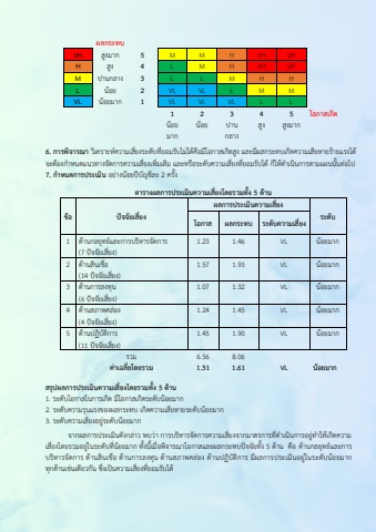 %u0e1c%u0e25%u0e01%u0e23%u0e30%u0e17%u0e1aVH %u0e2a%u0e39%u0e07%u0e21%u0e33%u0e01 5 M M H VH VHH %u0e2a%u0e39%u0e07 4 L M H VH VHM %u0e1b%u0e33%u0e19%u0e01%u0e25%u0e33%u0e07 3 L L M H HL %u0e19%u0e49%u0e2d%u0e22 2 VL VL L M MVL %u0e19%u0e49%u0e2d%u0e22%u0e21%u0e33%u0e01 1 VL VL VL L L1 2 3 4 5 %u0e42%u0e2d%u0e01%u0e32%u0e2a%u0e40%u0e01%u0e34%u0e14%u0e19%u0e49%u0e2d%u0e22 %u0e19%u0e49%u0e2d%u0e22 %u0e1b%u0e33%u0e19 %u0e2a%u0e39%u0e07 %u0e2a%u0e39%u0e07%u0e21%u0e33%u0e01%u0e21%u0e33%u0e01 %u0e01%u0e25%u0e33%u0e076. %u0e01%u0e32%u0e23%u0e1e%u0e34%u0e08%u0e32%u0e23%u0e13%u0e32 %u0e27%u0e34%u0e40%u0e04%u0e23%u0e33%u0e30%u0e2b%u0e4c%u0e04%u0e27%u0e33%u0e21%u0e40%u0e2a%u0e35%u0e48%u0e22%u0e07%u0e23%u0e30%u0e14%u0e31%u0e1a%u0e17%u0e35%u0e48%u0e22%u0e2d%u0e21%u0e23%u0e31%u0e1a%u0e44%u0e21%u0e48%u0e44%u0e14%u0e49%u0e04%u0e37%u0e2d%u0e21%u0e35%u0e42%u0e2d%u0e01%u0e33%u0e2a%u0e40%u0e01%u0e34%u0e14%u0e2a%u0e39%u0e07 %u0e41%u0e25%u0e30%u0e21%u0e35%u0e1c%u0e25%u0e01%u0e23%u0e30%u0e17%u0e1a%u0e40%u0e01%u0e34%u0e14%u0e04%u0e27%u0e33%u0e21%u0e40%u0e2a%u0e35%u0e22%u0e2b%u0e33%u0e22%u0e23%u0e49%u0e33%u0e22%u0e41%u0e23%u0e07%u0e44%u0e14%u0e49 %u0e08%u0e30%u0e15%u0e49%u0e2d%u0e07%u0e01 %u0e33%u0e2b%u0e19%u0e14%u0e41%u0e19%u0e27%u0e17%u0e33%u0e07%u0e08%u0e31%u0e14%u0e01%u0e33%u0e23%u0e04%u0e27%u0e33%u0e21%u0e40%u0e2a%u0e35%u0e48%u0e22%u0e07%u0e40%u0e1e%u0e34%u0e48%u0e21%u0e40%u0e15%u0e34%u0e21 %u0e41%u0e25%u0e30%u0e2b%u0e23%u0e37%u0e2d%u0e23%u0e30%u0e14%u0e31%u0e1a%u0e04%u0e27%u0e33%u0e21%u0e40%u0e2a%u0e35%u0e48%u0e22%u0e07%u0e17%u0e35%u0e48%u0e22%u0e2d%u0e21%u0e23%u0e31%u0e1a%u0e44%u0e14%u0e49 %u0e01%u0e47%u0e43%u0e2b%u0e49%u0e14 %u0e33%u0e40%u0e19%u0e34%u0e19%u0e01%u0e33%u0e23%u0e15%u0e33%u0e21%u0e41%u0e1c%u0e19%u0e19%u0e31%u0e49%u0e19%u0e15%u0e48%u0e2d%u0e44%u0e1b7. %u0e01 %u0e32%u0e2b%u0e19%u0e14%u0e01%u0e32%u0e23%u0e1b%u0e23%u0e30%u0e40%u0e21%u0e34%u0e19 %u0e2d%u0e22%u0e48%u0e33%u0e07%u0e19%u0e49%u0e2d%u0e22%u0e1b%u0e35%u0e1a%u0e31%u0e0d%u0e0a%u0e35%u0e25%u0e30 2 %u0e04%u0e23%u0e31%u0e49%u0e07%u0e15%u0e32%u0e23%u0e32%u0e07%u0e1c%u0e25%u0e01%u0e32%u0e23%u0e1b%u0e23%u0e30%u0e40%u0e21%u0e34%u0e19%u0e04%u0e27%u0e32%u0e21%u0e40%u0e2a%u0e35%u0e48%u0e22%u0e07%u0e42%u0e14%u0e22%u0e23%u0e27%u0e21%u0e17%u0e31%u0e49%u0e07 5 %u0e14%u0e49%u0e32%u0e19%u0e02%u0e49%u0e2d %u0e1b%u0e31%u0e08%u0e08%u0e31%u0e22%u0e40%u0e2a%u0e35%u0e48%u0e22%u0e07%u0e1c%u0e25%u0e01%u0e32%u0e23%u0e1b%u0e23%u0e30%u0e40%u0e21%u0e34%u0e19%u0e04%u0e27%u0e32%u0e21%u0e40%u0e2a%u0e35%u0e48%u0e22%u0e07%u0e23%u0e30%u0e14%u0e31%u0e1a%u0e42%u0e2d%u0e01%u0e32%u0e2a %u0e1c%u0e25%u0e01%u0e23%u0e30%u0e17%u0e1a %u0e23%u0e30%u0e14%u0e31%u0e1a%u0e04%u0e27%u0e32%u0e21%u0e40%u0e2a%u0e35%u0e48%u0e22%u0e071 %u0e14%u0e49%u0e33%u0e19%u0e01%u0e25%u0e22%u0e38%u0e17%u0e18%u0e4c%u0e41%u0e25%u0e30%u0e01%u0e33%u0e23%u0e1a%u0e23%u0e34%u0e2b%u0e33%u0e23%u0e08%u0e31%u0e14%u0e01%u0e33%u0e23 1.23 1.46 VL %u0e19%u0e49%u0e2d%u0e22%u0e21%u0e33%u0e01(7 %u0e1b%u0e31%u0e08%u0e08%u0e31%u0e22%u0e40%u0e2a%u0e35%u0e48%u0e22%u0e07)2 %u0e14%u0e49%u0e33%u0e19%u0e2a%u0e34%u0e19%u0e40%u0e0a%u0e37%u0e48%u0e2d 1.57 1.93 VL %u0e19%u0e49%u0e2d%u0e22%u0e21%u0e33%u0e01(14 %u0e1b%u0e31%u0e08%u0e08%u0e31%u0e22%u0e40%u0e2a%u0e35%u0e48%u0e22%u0e07)3 %u0e14%u0e49%u0e33%u0e19%u0e01%u0e33%u0e23%u0e25%u0e07%u0e17%u0e38%u0e19 1.07 1.32 VL %u0e19%u0e49%u0e2d%u0e22%u0e21%u0e33%u0e01(6 %u0e1b%u0e31%u0e08%u0e08%u0e31%u0e22%u0e40%u0e2a%u0e35%u0e48%u0e22%u0e07)4 %u0e14%u0e49%u0e33%u0e19%u0e2a%u0e20%u0e33%u0e1e%u0e04%u0e25%u0e48%u0e2d%u0e07 1.24 1.45 VL %u0e19%u0e49%u0e2d%u0e22%u0e21%u0e33%u0e01(4 %u0e1b%u0e31%u0e08%u0e08%u0e31%u0e22%u0e40%u0e2a%u0e35%u0e48%u0e22%u0e07)5 %u0e14%u0e49%u0e33%u0e19%u0e1b%u0e0f%u0e34%u0e1a%u0e31%u0e15%u0e34%u0e01%u0e33%u0e23 1.45 1.90 VL %u0e19%u0e49%u0e2d%u0e22%u0e21%u0e33%u0e01(11 %u0e1b%u0e31%u0e08%u0e08%u0e31%u0e22%u0e40%u0e2a%u0e35%u0e48%u0e22%u0e07)%u0e23%u0e27%u0e21 6.56 8.06%u0e04%u0e48%u0e32%u0e40%u0e09%u0e25%u0e35%u0e48%u0e22%u0e42%u0e14%u0e22%u0e23%u0e27%u0e21 1.31 1.61 VL %u0e19%u0e49%u0e2d%u0e22%u0e21%u0e32%u0e01%u0e2a%u0e23%u0e38%u0e1b%u0e1c%u0e25%u0e01%u0e32%u0e23%u0e1b%u0e23%u0e30%u0e40%u0e21%u0e34%u0e19%u0e04%u0e27%u0e32%u0e21%u0e40%u0e2a%u0e35%u0e48%u0e22%u0e07%u0e42%u0e14%u0e22%u0e23%u0e27%u0e21%u0e17%u0e31%u0e49%u0e07 5 %u0e14%u0e49%u0e32%u0e191. %u0e23%u0e30%u0e14%u0e31%u0e1a%u0e42%u0e2d%u0e01%u0e33%u0e2a%u0e43%u0e19%u0e01%u0e33%u0e23%u0e40%u0e01%u0e34%u0e14 %u0e21%u0e35%u0e42%u0e2d%u0e01%u0e33%u0e2a%u0e40%u0e01%u0e34%u0e14%u0e23%u0e30%u0e14%u0e31%u0e1a%u0e19%u0e49%u0e2d%u0e22%u0e21%u0e33%u0e012. %u0e23%u0e30%u0e14%u0e31%u0e1a%u0e04%u0e27%u0e33%u0e21%u0e23%u0e38%u0e19%u0e41%u0e23%u0e07%u0e02%u0e2d%u0e07%u0e1c%u0e25%u0e01%u0e23%u0e30%u0e17%u0e1a %u0e40%u0e01%u0e34%u0e14%u0e04%u0e27%u0e33%u0e21%u0e40%u0e2a%u0e35%u0e22%u0e2b%u0e33%u0e22%u0e23%u0e30%u0e14%u0e31%u0e1a%u0e19%u0e49%u0e2d%u0e22%u0e21%u0e33%u0e013. %u0e23%u0e30%u0e14%u0e31%u0e1a%u0e04%u0e27%u0e33%u0e21%u0e40%u0e2a%u0e35%u0e48%u0e22%u0e07%u0e2d%u0e22%u0e39%u0e48%u0e23%u0e30%u0e14%u0e31%u0e1a%u0e19%u0e49%u0e2d%u0e22%u0e21%u0e33%u0e01%u0e08%u0e33%u0e01%u0e1c%u0e25%u0e01%u0e33%u0e23%u0e1b%u0e23%u0e30%u0e40%u0e21%u0e34%u0e19%u0e14%u0e31%u0e07%u0e01%u0e25%u0e48%u0e33%u0e27 %u0e1e%u0e1a%u0e27%u0e48%u0e33 %u0e01%u0e33%u0e23%u0e1a%u0e23%u0e34%u0e2b%u0e33%u0e23%u0e08%u0e31%u0e14%u0e01%u0e33%u0e23%u0e04%u0e27%u0e33%u0e21%u0e40%u0e2a%u0e35%u0e48%u0e22%u0e07%u0e08%u0e33%u0e01%u0e21%u0e33%u0e15%u0e23%u0e01%u0e33%u0e23%u0e17%u0e35%u0e48%u0e14 %u0e33%u0e40%u0e19%u0e34%u0e19%u0e01%u0e33%u0e23%u0e2d%u0e22%u0e39%u0e48%u0e17 %u0e33%u0e43%u0e2b%u0e49%u0e40%u0e01%u0e34%u0e14%u0e04%u0e27%u0e33%u0e21%u0e40%u0e2a%u0e35%u0e48%u0e22%u0e07%u0e42%u0e14%u0e22%u0e23%u0e27%u0e21%u0e2d%u0e22%u0e39%u0e48%u0e43%u0e19%u0e23%u0e30%u0e14%u0e31%u0e1a%u0e17%u0e35%u0e48%u0e19%u0e49%u0e2d%u0e22%u0e21%u0e33%u0e01 %u0e17%u0e31%u0e49%u0e07%u0e19%u0e35%u0e49%u0e40%u0e21%u0e37%u0e48%u0e2d%u0e1e%u0e34%u0e08%u0e33%u0e23%u0e13%u0e33%u0e42%u0e2d%u0e01%u0e33%u0e2a%u0e41%u0e25%u0e30%u0e1c%u0e25%u0e01%u0e23%u0e30%u0e17%u0e1a%u0e1b%u0e31%u0e08%u0e08%u0e31%u0e2