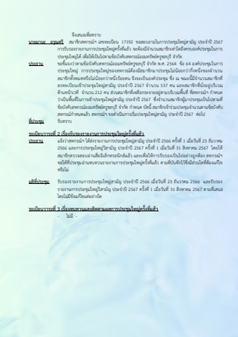 %u0e08%u0e36%u0e07%u0e40%u0e2a%u0e19%u0e2d%u0e40%u0e1e%u0e37%u0e48%u0e2d%u0e17%u0e23%u0e33%u0e1a%u0e19%u0e32%u0e22%u0e21%u0e32%u0e19%u0e30 %u0e2d%u0e23%u0e38%u0e13%u0e28%u0e23%u0e35 %u0e2a%u0e21%u0e33%u0e0a%u0e34%u0e01%u0e2a%u0e2b%u0e01%u0e23%u0e13%u0e4c%u0e2f %u0e40%u0e25%u0e02%u0e17%u0e30%u0e40%u0e1a%u0e35%u0e22%u0e19 17192 %u0e02%u0e2d%u0e2a%u0e2d%u0e1a%u0e16%u0e33%u0e21%u0e43%u0e19%u0e01%u0e33%u0e23%u0e1b%u0e23%u0e30%u0e0a%u0e38%u0e21%u0e43%u0e2b%u0e0d%u0e48%u0e2a%u0e33%u0e21%u0e31%u0e0d %u0e1b%u0e23%u0e30%u0e08 %u0e33%u0e1b%u0e35 2567 %u0e01%u0e33%u0e23%u0e23%u0e31%u0e1a%u0e23%u0e2d%u0e07%u0e23%u0e33%u0e22%u0e07%u0e33%u0e19%u0e01%u0e33%u0e23%u0e1b%u0e23%u0e30%u0e0a%u0e38%u0e21%u0e43%u0e2b%u0e0d%u0e48%u0e04%u0e23%u0e31%u0e49%u0e07%u0e17%u0e35%u0e48%u0e41%u0e25%u0e49%u0e27 %u0e08%u0e30%u0e15%u0e49%u0e2d%u0e07%u0e21%u0e35%u0e08 %u0e33%u0e19%u0e27%u0e19%u0e2a%u0e21%u0e33%u0e0a%u0e34%u0e01%u0e40%u0e17%u0e48%u0e33%u0e43%u0e14%u0e16%u0e36%u0e07%u0e04%u0e23%u0e1a%u0e2d%u0e07%u0e04%u0e4c%u0e1b%u0e23%u0e30%u0e0a%u0e38%u0e21%u0e43%u0e19%u0e01%u0e33%u0e23%u0e1b%u0e23%u0e30%u0e0a%u0e38%u0e21%u0e43%u0e2b%u0e0d%u0e48%u0e44%u0e14%u0e49 %u0e40%u0e1e%u0e37%u0e48%u0e2d%u0e43%u0e2b%u0e49%u0e40%u0e1b%u0e47%u0e19%u0e44%u0e1b%u0e15%u0e33%u0e21%u0e02%u0e49%u0e2d%u0e1a%u0e31%u0e07%u0e04%u0e31%u0e1a%u0e2a%u0e2b%u0e01%u0e23%u0e13%u0e4c%u0e2d%u0e2d%u0e21%u0e17%u0e23%u0e31%u0e1e%u0e22%u0e4c%u0e04%u0e23%u0e39%u0e0a%u0e25%u0e1a%u0e38%u0e23%u0e35 %u0e08 %u0e33%u0e01%u0e31%u0e14 %u0e1b%u0e23%u0e30%u0e18%u0e32%u0e19 %u0e02%u0e2d%u0e0a%u0e35%u0e49%u0e41%u0e08%u0e07%u0e27%u0e48%u0e33%u0e15%u0e33%u0e21%u0e02%u0e49%u0e2d%u0e1a%u0e31%u0e07%u0e04%u0e31%u0e1a%u0e2a%u0e2b%u0e01%u0e23%u0e13%u0e4c%u0e2d%u0e2d%u0e21%u0e17%u0e23%u0e31%u0e1e%u0e22%u0e4c%u0e04%u0e23%u0e39%u0e0a%u0e25%u0e1a%u0e38%u0e23%u0e35 %u0e08 %u0e33%u0e01%u0e31%u0e14 %u0e1e.%u0e28. 2564 %u0e02%u0e49%u0e2d 64 %u0e2d%u0e07%u0e04%u0e4c%u0e1b%u0e23%u0e30%u0e0a%u0e38%u0e21%u0e43%u0e19%u0e01%u0e33%u0e23%u0e1b%u0e23%u0e30%u0e0a%u0e38%u0e21%u0e43%u0e2b%u0e0d%u0e48 %u0e01%u0e33%u0e23%u0e1b%u0e23%u0e30%u0e0a%u0e38%u0e21%u0e43%u0e2b%u0e0d%u0e48%u0e02%u0e2d%u0e07%u0e2a%u0e2b%u0e01%u0e23%u0e13%u0e4c%u0e15%u0e49%u0e2d%u0e07%u0e21%u0e35%u0e2a%u0e21%u0e33%u0e0a%u0e34%u0e01%u0e21%u0e33%u0e1b%u0e23%u0e30%u0e0a%u0e38%u0e21%u0e44%u0e21%u0e48%u0e19%u0e49%u0e2d%u0e22%u0e01%u0e27%u0e48%u0e33%u0e01%u0e36%u0e48%u0e07%u0e2b%u0e19%u0e36%u0e48%u0e07%u0e02%u0e2d%u0e07%u0e08 %u0e33%u0e19%u0e27%u0e19%u0e2a%u0e21%u0e33%u0e0a%u0e34%u0e01%u0e17%u0e31%u0e49%u0e07%u0e2b%u0e21%u0e14%u0e2b%u0e23%u0e37%u0e2d%u0e44%u0e21%u0e48%u0e19%u0e49%u0e2d%u0e22%u0e01%u0e27%u0e48%u0e33%u0e2b%u0e19%u0e36%u0e48%u0e07%u0e23%u0e49%u0e2d%u0e22%u0e04%u0e19 %u0e08%u0e36%u0e07%u0e08%u0e30%u0e40%u0e1b%u0e47%u0e19%u0e2d%u0e07%u0e04%u0e4c%u0e1b%u0e23%u0e30%u0e0a%u0e38%u0e21 %u0e0b%u0e36%u0e48%u0e07 %u0e13 %u0e02%u0e13%u0e30%u0e19%u0e35%u0e49%u0e21%u0e35%u0e08 %u0e33%u0e19%u0e27%u0e19%u0e2a%u0e21%u0e33%u0e0a%u0e34%u0e01%u0e17%u0e35%u0e48%u0e25%u0e07%u0e17%u0e30%u0e40%u0e1a%u0e35%u0e22%u0e19%u0e40%u0e02%u0e49%u0e33%u0e1b%u0e23%u0e30%u0e0a%u0e38%u0e21%u0e43%u0e2b%u0e0d%u0e48%u0e2a%u0e33%u0e21%u0e31%u0e0d %u0e1b%u0e23%u0e30%u0e08 %u0e33%u0e1b%u0e35 2567 %u0e08 %u0e33%u0e19%u0e27%u0e19 537 %u0e04%u0e19 %u0e41%u0e25%u0e30%u0e2a%u0e21%u0e33%u0e0a%u0e34%u0e01%u0e17%u0e35%u0e48%u0e19%u0e31%u0e48%u0e07%u0e2d%u0e22%u0e39%u0e48%u0e1a%u0e23%u0e34%u0e40%u0e27%u0e13%u0e14%u0e49%u0e33%u0e19%u0e2b%u0e19%u0e49%u0e33%u0e40%u0e27%u0e17%u0e35 %u0e08 %u0e33%u0e19%u0e27%u0e19 212 %u0e04%u0e19 %u0e2a%u0e48%u0e27%u0e19%u0e2a%u0e21%u0e33%u0e0a%u0e34%u0e01%u0e17%u0e35%u0e48%u0e40%u0e2b%u0e25%u0e37%u0e2d%u0e01%u0e23%u0e30%u0e08%u0e33%u0e22%u0e2d%u0e22%u0e39%u0e48%u0e15%u0e33%u0e21%u0e1a%u0e23%u0e34%u0e40%u0e27%u0e13%u0e1e%u0e37%u0e49%u0e19%u0e17%u0e35%u0e48 %u0e17%u0e35%u0e48%u0e2a%u0e2b%u0e01%u0e23%u0e13%u0e4c%u0e2f %u0e01 %u0e33%u0e2b%u0e19%u0e14%u0e27%u0e48%u0e33%u0e40%u0e1b%u0e47%u0e19%u0e1e%u0e37%u0e49%u0e19%u0e17%u0e35%u0e48%u0e43%u0e19%u0e01%u0e33%u0e23%u0e40%u0e02%u0e49%u0e33%u0e1b%u0e23%u0e30%u0e0a%u0e38%u0e21%u0e43%u0e2b%u0e0d%u0e48%u0e2a%u0e33%u0e21%u0e31%u0e0d %u0e1b%u0e23%u0e30%u0e08 %u0e33%u0e1b%u0e35 2567 %u0e0b%u0e36%u0e48%u0e07%u0e08 %u0e33%u0e19%u0e27%u0e19%u0e2a%u0e21%u0e33%u0e0a%u0e34%u0e01%u0e1c%u0e39%u0e49%u0e21%u0e33%u0e1b%u0e23%u0e30%u0e0a%u0e38%u0e21%u0e40%u0e1b%u0e47%u0e19%u0e44%u0e1b%u0e15%u0e33%u0e21%u0e17%u0e35%u0e48%u0e02%u0e49%u0e2d%u0e1a%u0e31%u0e07%u0e04%u0e31%u0e1a%u0e2a%u0e2b%u0e01%u0e23%u0e13%u0e4c%u0e2d%u0e2d%u0e21%u0e17%u0e23%u0e31%u0e1e%u0e22%u0e4c%u0e04%u0e23%u0e39%u0e0a%u0e25%u0e1a%u0e38%u0e23%u0e35 %u0e08 %u0e33%u0e01%u0e31%u0e14 %u0e01 %u0e33%u0e2b%u0e19%u0e14 %u0e1a%u0e31%u0e14%u0e19%u0e35%u0e49 %u0e2a%u0e21%u0e33%u0e0a%u0e34%u0e01%u0e40%u0e02%u0e49%u0e33%u0e23%u0e48%u0e27%u0e21%u0e1b%u0e23%u0e30%u0e0a%u0e38%u0e21%u0e08 %u0e33%u0e19%u0e27%u0e19%u0e15%u0e33%u0e21%u0e02%u0e49%u0e2d%u0e1a%u0e31%u0e07%u0e04%u0e31%u0e1a%u0e2a%u0e2b%u0e01%u0e23%u0e13%u0e4c%u0e01 %u0e33%u0e2b%u0e19%u0e14%u0e41%u0e25%u0e49%u0e27 %u0e2a%u0e2b%u0e01%u0e23%u0e13%u0e4c%u0e2f %u0e02%u0e2d%u0e14 %u0e33%u0e40%u0e19%u0e34%u0e19%u0e01%u0e33%u0e23%u0e40%u0e23%u0e34%u0e48%u0e21%u0e1b%u0e23%u0e30%u0e0a%u0e38%u0e21%u0e43%u0e2b%u0e0d%u0e48%u0e2a%u0e33%u0e21%u0e31%u0e0d %u0e1b%u0e23%u0e30%u0e08 %u0e33%u0e1b%u0e35 2567 %u0e15%u0e48%u0e2d%u0e44%u0e1b%u0e17%u0e35%u0e48%u0e1b%u0e23%u0e30%u0e0a%u0e38%u0e21 %u0e23%u0e31%u0e1a%u0e17%u0e23%u0e33%u0e1a%u0e23%u0e30%u0e40%u0e1a%u0e35%u0e22%u0e1a%u0e27%u0e32%u0e23%u0e30%u0e17%u0e35%u0e48 2 %u0e40%u0e23%u0e37%u0e48%u0e2d%u0e07%u0e23%u0e31%u0e1a%u0e23%u0e2d%u0e07%u0e23%u0e32%u0e22%u0e07%u0e32%u0e19%u0e01%u0e32%u0e23%u0e1b%u0e23%u0e30%u0e0a%u0e38%u0e21%u0e43%u0e2b%u0e0d%u0e48%u0e04%u0e23%u0e31%u0e49%u0e07%u0e17%u0e35%u0e48%u0e41%u0e25%u0e49%u0e27%u0e1b%u0e23%u0e30%u0e18%u0e32%u0e19 %u0e41%u0e08%u0e49%u0e07%u0e27%u0e48%u0e33%u0e2a%u0e2b%u0e01%u0e23%u0e13%u0e4c%u0e2f %u0e44%u0e14%u0e49%u0e2a%u0e48%u0e07%u0e23%u0e33%u0e22%u0e07%u0e33%u0e19%u0e01%u0e33%u0e23%u0e1b%u0e23%u0e30%u0e0a%u0e38%u0e21%u0e43%u0e2b%u0e0d%